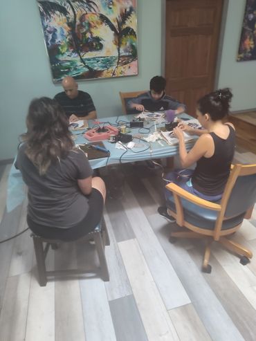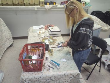 If you're looking to do a simple stained glass project for a group this is perfect. It's a 2 to 3 hour session that she travels to you and your facility and instructs an abstract project using sea glass, glass nuggets, bevels, agates, or you can bring your own items to incorporate. Starting price of $35 per person. Scheduling available.