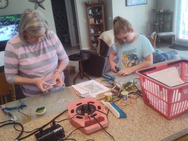 Child safe class. They chose from already ground glass and put copper foil around it. They then arrange it in a design that they choose and take it to Ana to be soldered in front of them. While they wait for their turn, color pages are offered to take home also. 2 hour session at $35 per child. Everything included. Flexible scheduling and can travel to you for events and camps.